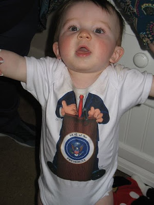 In an unprecedented turn of events, a toddler from Alabama becomes the youngest presidential nominee today. At a last minute press conference held just one day before the 2008 Presidential election, nine month old Garrett declared he is running as the nominee for the Repooplican Party. When asked why he decided to run for office, he stated, “Yi yiyi Aaiy Eeeeee EEEEE Ahhhhhhh Ugh HuH HUH Huh Eeeee EeDadadadadadadada.”
