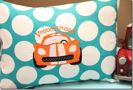 Love all of it – especially the alphabet and the adorable little pillows with the cars! Lucky girl to have such great friends to help with these project.