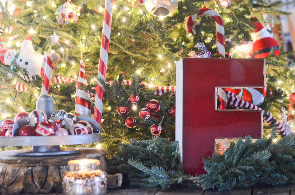 As we move through into what we call the “big den”, our Dear Santa letter is empty? What in the world? I think what has happened is that is in mid-change-our-mind-mode. Do your kids do that? Mine are changing their minds everyday! I love to use natural ever green throughout the house. I didn’t let them take too much off the bottom when I bought my first-ever REAL tree, because I knew I could use it all around!