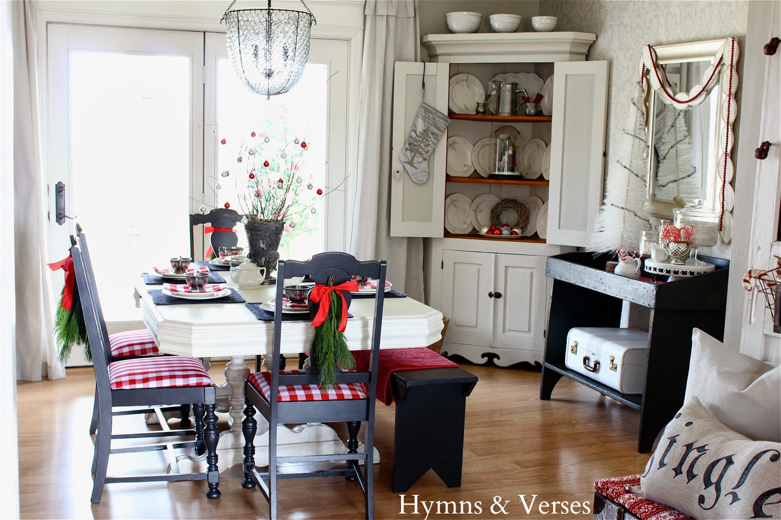 Today we are wrapping up the week of Holiday Home Tours with the big Grand Finale of Doreen from Hymns and Verses! This lady has a back porch that is a dream. I just want to snuggle up on it with a book and some hot chocolate and hang out all day! Please remember to head over to her blog to pin the images so she can get the pageviews.