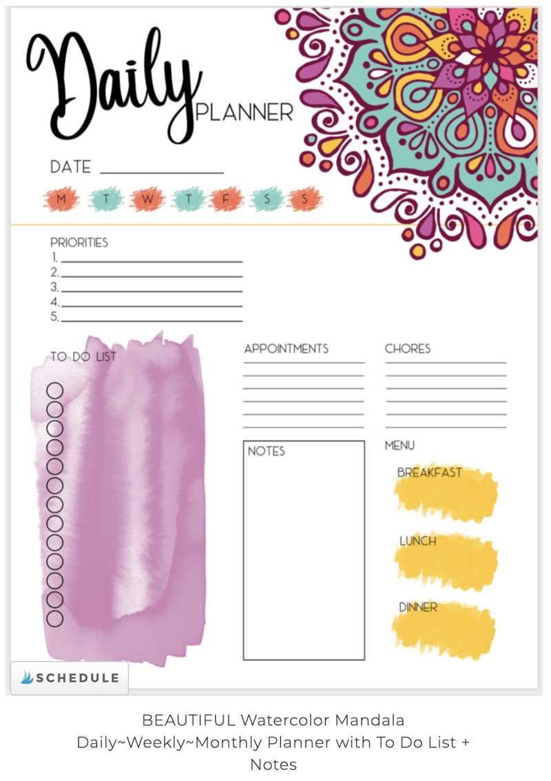 1. Get yourself organized with this beautiful watercolor Mandala themed Planner!